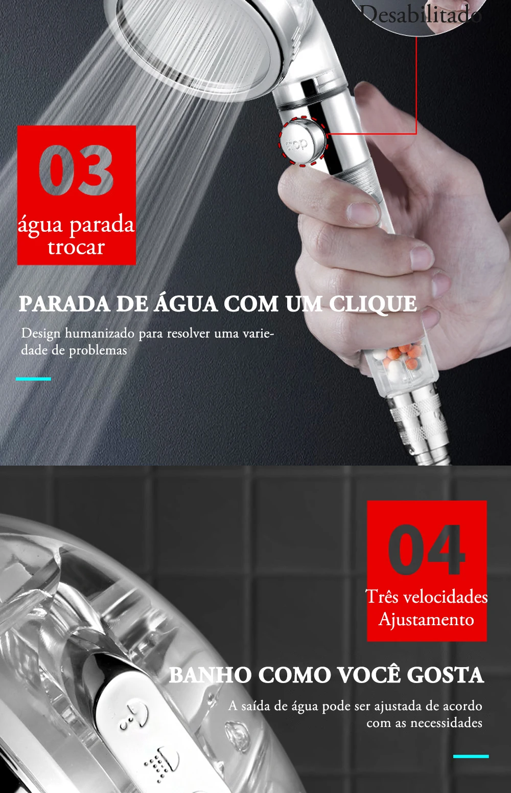 Característica da cabeça do chuveiro: Chuveiros para economia de água